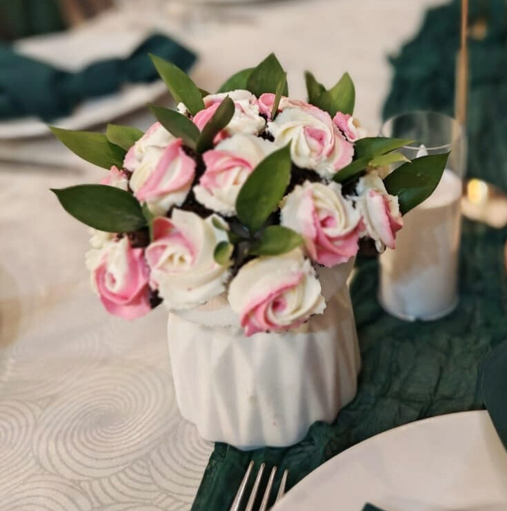 шоколадные мини-капкейки с кремчиз в форме букета в стильном горшочке