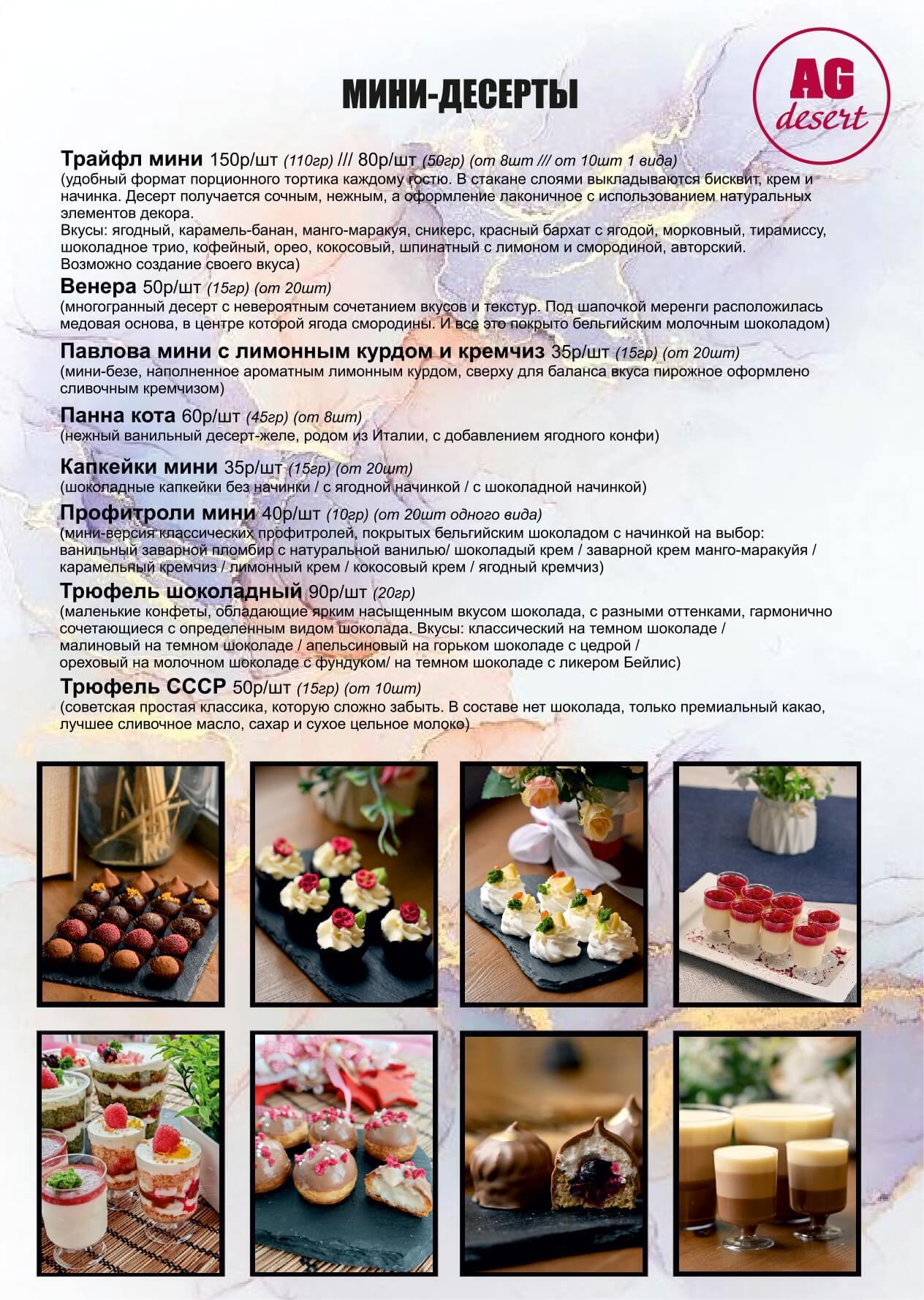 Весь ассортимент и цены на пирожные и десерты смотрите в каталоге