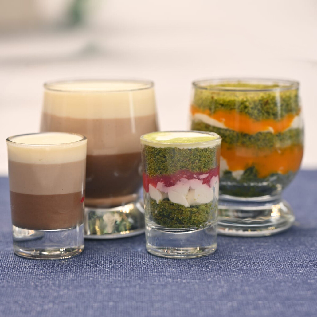 порционный кусочек торта в бокале, вкусы в ассортименте